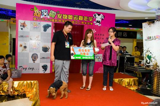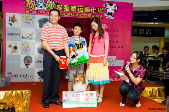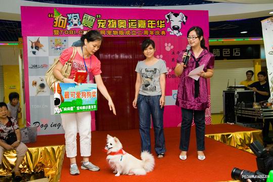 8月16日下午2點,近70多只寵物狗和他們的主人來到比賽現場,參加"狗狗震"寵物運動會了。"哈哈……"一只寵物狗在比賽現場撒嬌起來,想得到主人的物質獎勵,引起人群中傳來陣陣笑聲。隨后,所有的狗仔狗女使出渾身解數分別參加了時裝SHOW、才藝等比賽環節,角逐最可愛狗狗獎、最聰明狗狗獎、TOBI最上鏡狗狗獎、最佳著裝形象獎、最杰出表現狗狗獎共5個獎項。比賽現場,猶如明星見面會,吸引了、近300多名觀眾觀賽,寵物狗仔們如明星般受到歡迎,觀眾如場外啦啦隊,自發地將掌聲送給自己喜愛的狗仔,叫喊聲給比賽增添了些許歡快的氣息。比賽一直持續到下午4點,在活動最后,有專業的寵物醫院專家為大家講解了相關的養護知識,為現場的狗主上了一堂生動精彩的課程,受到了大家的歡迎。