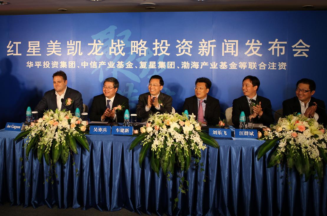 2010年6月19日,國內領先的大型連鎖家居購物中心零售運營商紅星美凱龍在京舉行新聞發布會,宣布華平投資集團(Warburg Pincus)、中信產業基金、復星集團、渤海產業基金等聯合向紅星美凱龍注資26億元人民幣,共同聚勢紅星美凱龍,謀求多方共贏。紅星美凱龍董事長車建新、中信產業投資基金管理有限公司董事長兼CEO劉樂飛及總裁吳亦兵、華平投資(亞洲)執行董事Joe Gagnon及董事總經理遲淼、復星集團總裁汪群斌、復星創富投資管理有限公司總裁唐斌、渤海產業投資基金管理有限公司CEO李祥生及執行董事薛明等出席了發布會,各方代表分別就此次融資情況做了相關介紹。
