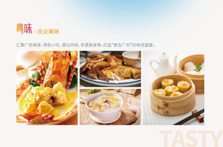 2)粵味(舌尖美味)+粵享(舒適閑逸)+粵趣(在地文化)+粵潮(潮流文化)