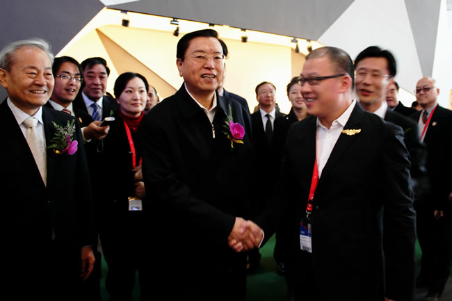 中央領(lǐng)導(dǎo)張德江(中)視察指導(dǎo)工