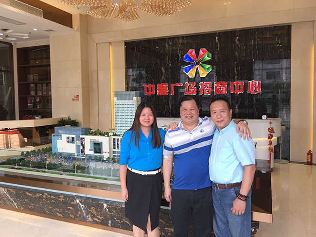 領導合照(左起中嘉廣場副總經理蘇雪麗、中嘉廣場董事長余耀元、第一商業網總裁黃華軍)