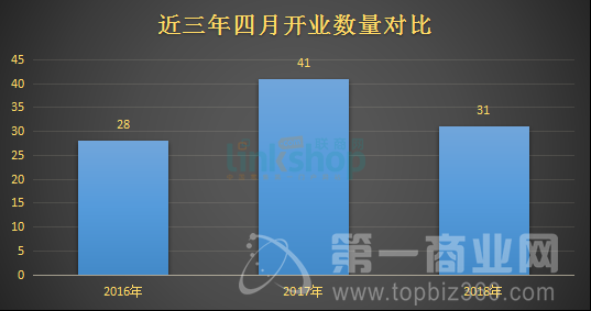 4月全國開業項目數量統計表