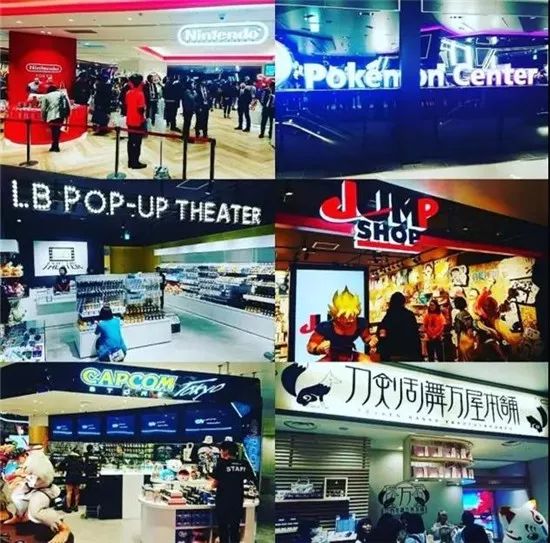 除了有任天堂首家官方直營店、寶可夢中心之外,還有引入了少年漫畫周刊「JUMP」周邊商店、線上電玩《刀劍亂舞》首家官方實體店、出品洛克人、快打旋風的「CAPCOM」周邊專賣店。以及全日本第一家的「GG電競咖啡廳」,堪稱“二次元愛好者的天堂”。