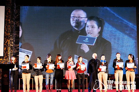 廣東賓寶服飾有限公司副總經(jīng)理劉長風(fēng)(右四)為獲得2013年度優(yōu)秀營業(yè)員頒獎。