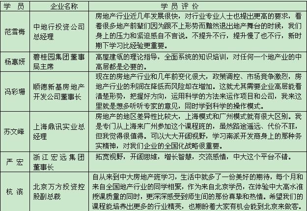 依托中山大學(xué)強(qiáng)大的學(xué)術(shù)背景和國(guó)內(nèi)、國(guó)際廣泛的社會(huì)資源,我們不斷優(yōu)化我們的教學(xué)方式及師資力量,使廣大學(xué)員能更加熟悉國(guó)家政策,了解房地產(chǎn)未來發(fā)展,提升其戰(zhàn)略決策能力,整合優(yōu)勢(shì)資源,規(guī)避經(jīng)營(yíng)風(fēng)險(xiǎn),能站在一個(gè)更高的起點(diǎn)協(xié)助企業(yè)騰飛。