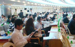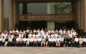 本網總裁黃華軍與廣州嬌妍日用品總經理潘自達、市場總監李基新合影