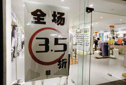 受金融危機影響,東莞各大百貨紛紛以打折促銷的手段聚集人氣,留住顧客才是企業發展的關鍵本報記者陳棟攝