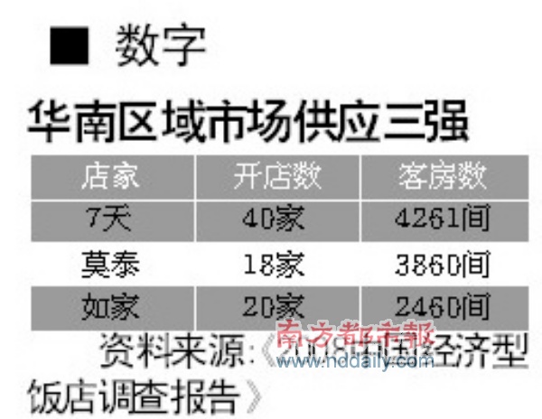 據(jù)悉,截至去年12月底,成立6年的如家以266家已開(kāi)業(yè)飯店數(shù)超越錦江之星,成為2007“供應(yīng)前十強(qiáng)”的榜首,其后為錦江之星、莫泰、7天、漢庭,其中7天酒店連鎖以384%的開(kāi)店增長(zhǎng)率,從去年的第八位躍居第四位,成為十強(qiáng)中增長(zhǎng)最快的企業(yè)。