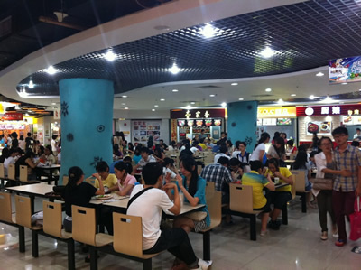 在新的經營團隊運作下,G O G O新天地在每個樓層都設置了特色餐飲,三樓的美食廣場還專門引入中、日、韓等60多間餐飲店,可滿足2000多人同時就餐,項目餐飲比例高達50%。