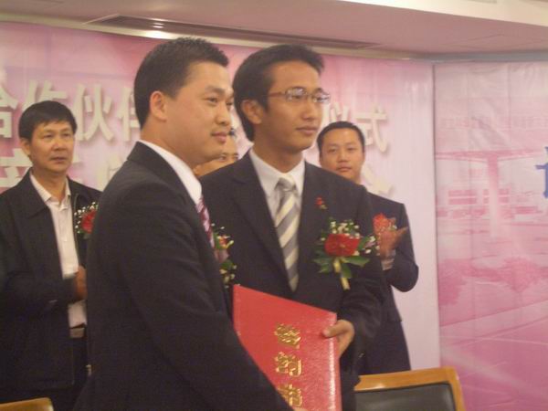 信盈投資有限公司董事長林治平(右)與蘇寧簽定戰略合作伙伴關系