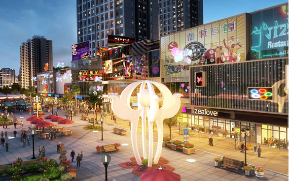 在規劃設計方面,項目專為商業經營所打造的空間布局、通達人流動線設計、科學的業態布局,多組架空連廊使商業街與購物中心互補互聯,形成大回環。直梯、內外步梯、扶梯多方位交通合理引導客流上下,以完美規劃催生消費熱潮。