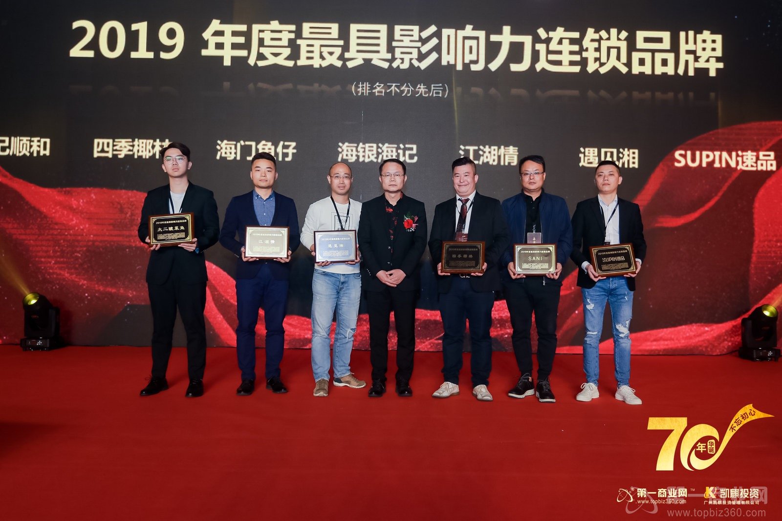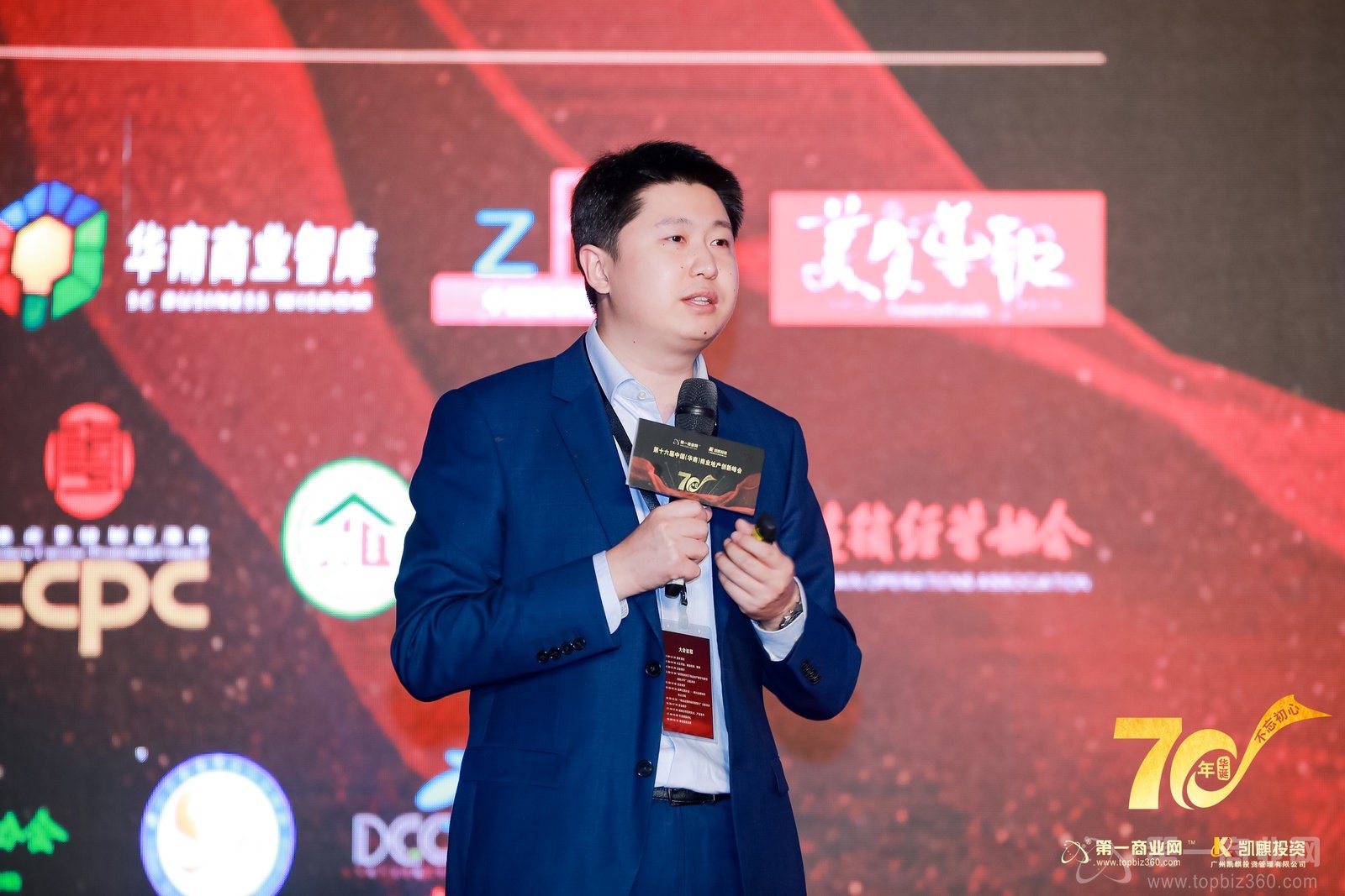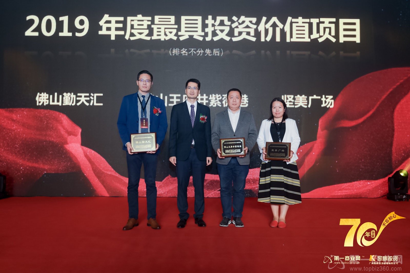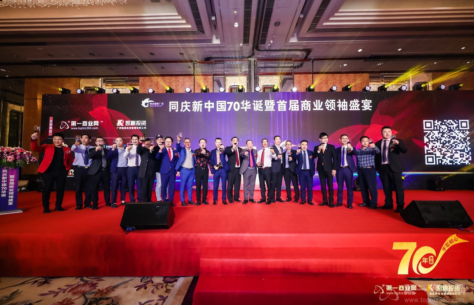 群賢畢至,星光熠熠,共筑華南商業榮耀。晚上7點,同慶新中國70華誕暨首屆商業領袖盛宴在莊嚴的國歌聲中拉開了序幕。高端大氣的簽到背景板、尊貴華麗的長桌宴、精致考究的美味佳肴……精心設計的舞美效果讓整個會場顯得格外奢華璀璨。