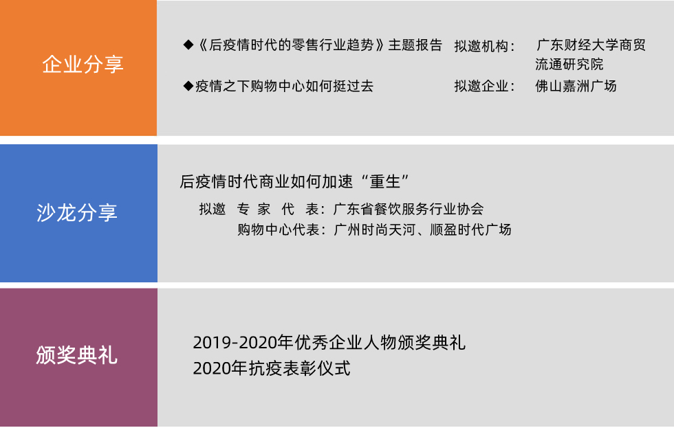 本次峰會 以“后疫情時代 破繭重生”為主題,通過專家剖析、對話沙龍、企業分享等形式呈現華南商業頑強奮戰、迸發出共同“戰疫”的磅礴力量,傾聽企業戰“疫”心聲,了解業內面對疫情應對措施,深入探索新商業模式,共謀未來發展之策。